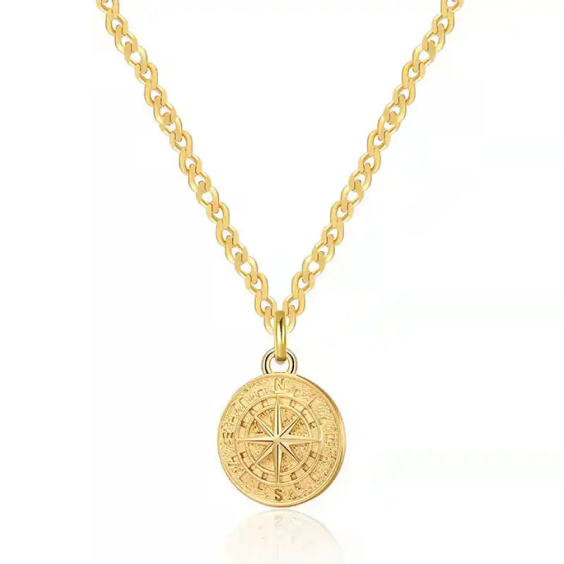 Collier à Pendentif Tendance pour Hommes – Étoile du Nord, Boussole, Pièce de Monnaie