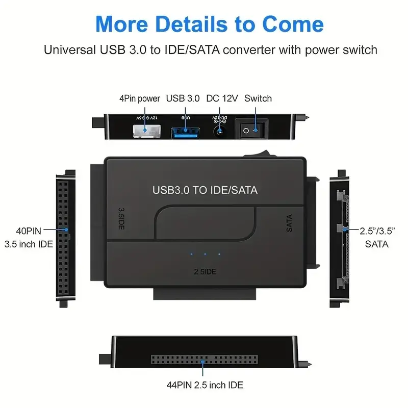 Vous avez un vieux disque IDE à récupérer ou un HDD/SSD SATA à transformer en externe ? Cet adaptateur USB 3.0 vers SATA/IDE connecte facilement n’importe quel disque 2.5″ ou 3.5″ (SATA ou IDE) à votre PC/Mac via USB 3.0, sans boîtier compliqué.