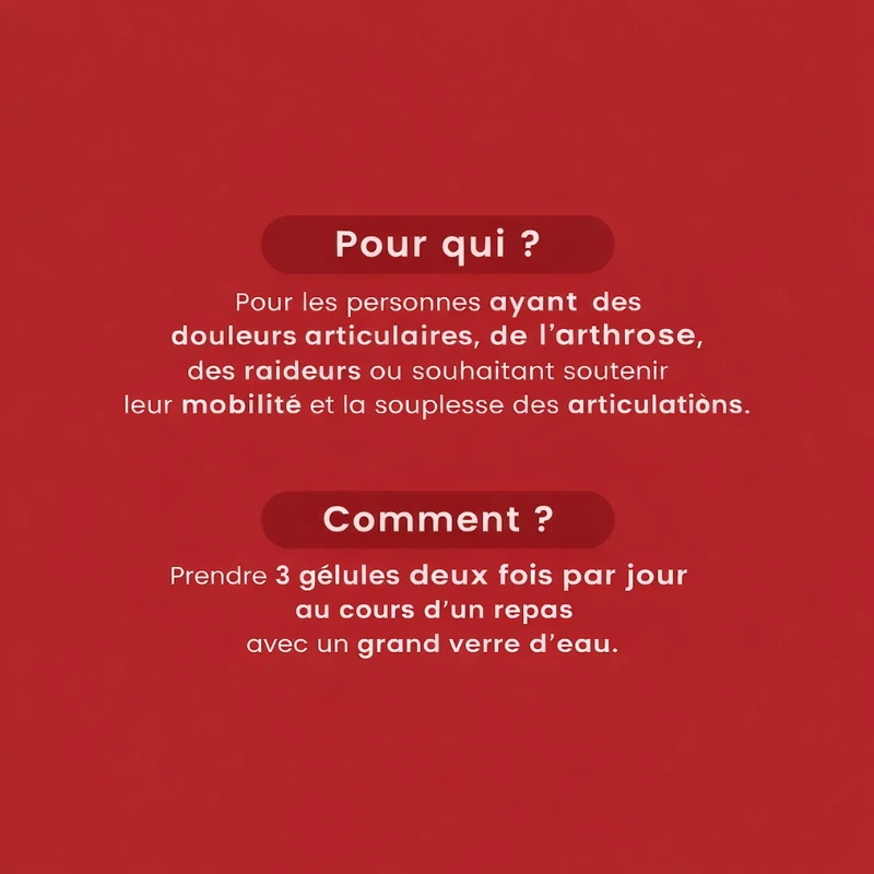 Idéal pour les seniors, sportifs ou toute personne cherchant un soutien végétal pour les articulations, sans additifs controversés.