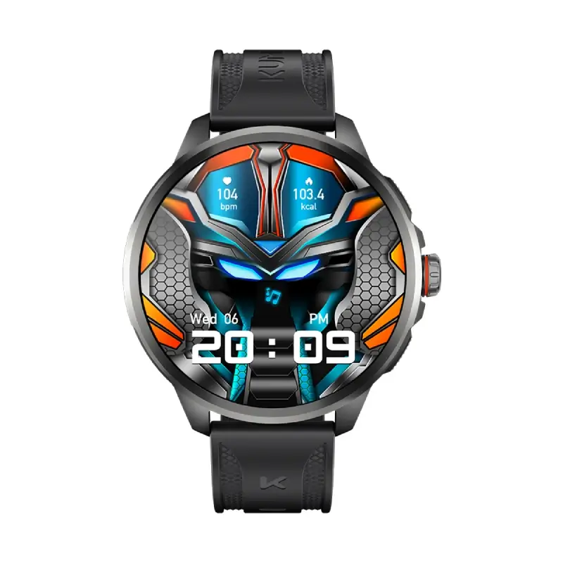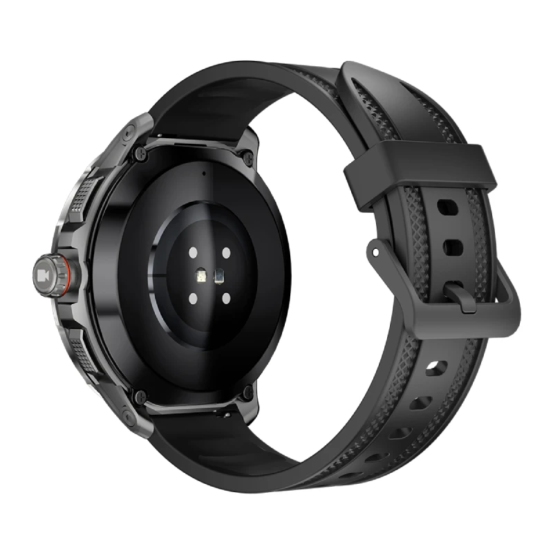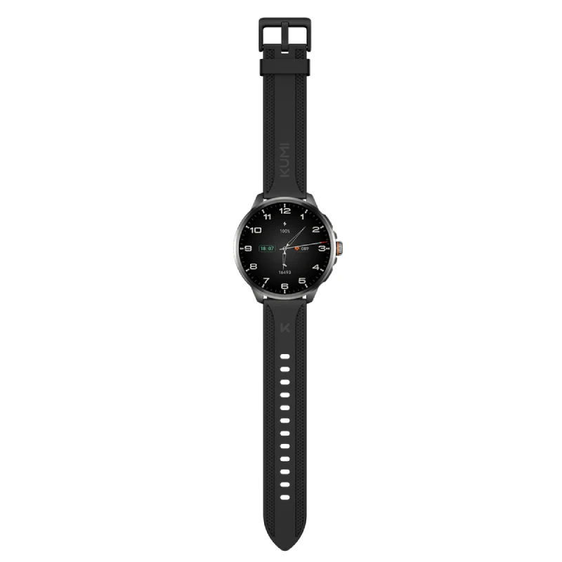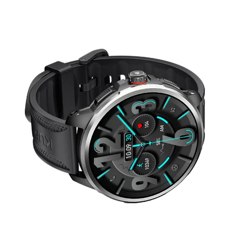 Profil de la smartwatch KUMI X3 Pro mettant en avant le bouton de contrôle rotatif et la finition étanche du boîtier.